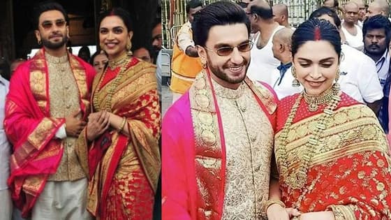 रेड गोल्डन कलर की मैचिंग ड्रेस में दिखें दीपवीर, शादी की पहली सालगिरह पर तिरुपति में किए दर्शन