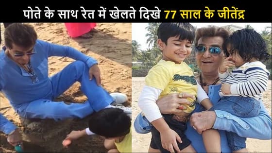 3 साल के पोते की खुशी के लिए बीच पर बैठकर रेत में खेलते नजर आए 77 साल के दादा जीतेंद्र