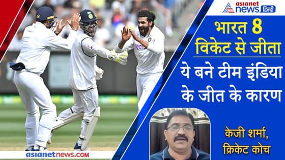 वीडियो डेस्क। टीम इंडिया ने ऑस्ट्रेलिया को मेलबर्न में खेले गए बॉक्सिंग-डे टेस्ट में 8 विकेट से हराया। इसी के साथ भारत ने 4 टेस्ट की सीरीज 1-1 से बराबर की। मैच में टॉस जीतकर ऑस्ट्रेलिया टीम ने पहले बल्लेबाजी करते हुए 195 रन बनाए थे। इसके बाद टीम इंडिया ने पहली पारी में 326 रन बनाते हुए 131 रन की बढ़त ली थी। जवाब में ऑस्ट्रेलिया ने दूसरी पारी में 103.1 ओवर खेलकर 1.94 के रनरेट से 200 रन बनाए और भारत को 70 रन का टारगेट दिया जिसे 2 विकेट खोकर टीम इंडिया हासिल कर लिया। आखिर इस मैच के जीत के क्या कारण रहे क्यों पहले टेस्ट में हारी फिर इस मैच में धमाकेदार जीत दर्ज की। इसके पीछे की क्या वजह है बता रहे हैं मध्य प्रदेश पुलिस क्रिकेट टीम के कप्तान केजी शर्मा।