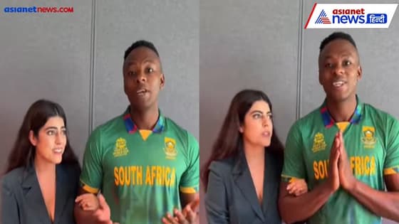 वीडियो डेस्क। ऑस्ट्रेलिया में जारी टी20 विश्व कप 2022 के दौरान कुछ ऐसा देखने को मिला जो आपकी हंसी नहीं रुकने देगा। साउथ अफ्रीका के तेज गेंदबाज कगिसो रबाडा भारतीय रेडियो जॉकी करिश्मा के साथ हिंदी में बात करते हुए दिखाई दे रहे हैं। रबाडा का ये वीडियो तेजी से इंटरनेट पर वायरल हो रहा है। करिश्मा रबाडा को भारतीय लड़की के मां बाप को इंप्रैस करने के लिए हिंदी में कुछ लाइन सिखाती हैं। जिसके बाद रबाडा उसे दोहराते हुए दिखाई दे रहे हैं। रबाडा ससुर जी को 'सुअर' जी और क्षमा को 'चुमा' कह रहे हैं। देखिए ये वीडियो।