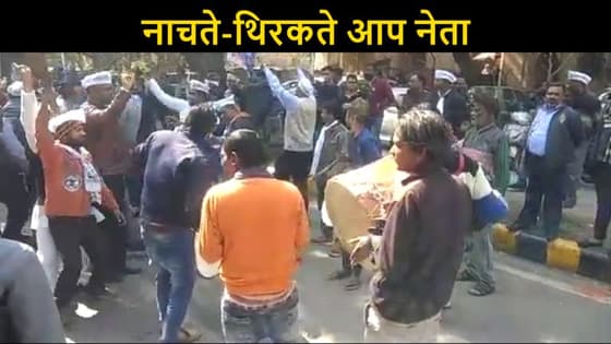 काउंटिंग सेंटर के बाहर ही जीत का जश्न मनाते आम आदमी पार्टी के कार्यकर्ता