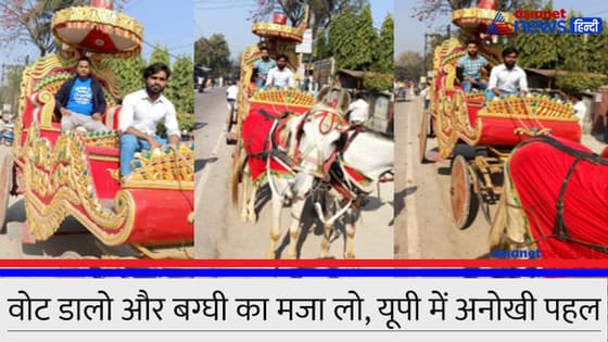 UP Election 2022: गोरखपुर में वोट डालने के बाद लोग ले रहे बग्घी का मजा... देखिए रईस का अनोखा प्रयास