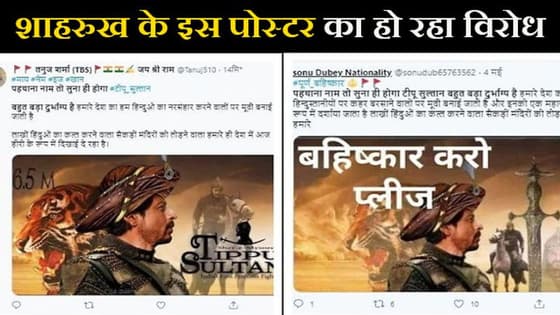 वीडियो डेस्क। सोशल मीडिया पर इन दिनों एक फिल्म का पोस्टर तेजी से वायरल हो रहा है। पोस्टर पर एक दहाड़ते हुए शेर के साथ बॉलिवुड अभिनेता शाहरुख खान की फोटो है। फिल्म के पोस्टर पर लिखा है शेर ए मैसूर टीपू सुल्तान, भारत का पहला फ्रीडम फाइटर। दावा किया जा रहा है कि ये फिल्म मैसूर के राजा टीपू सुल्तान पर आधारित फिल्म है जिसमें शाहरुख खान मैन भूमिका में हैं। पोस्टर के वायरल होने के बाद लोगों ने फिल्म के बहिष्कार की अपील की है। पोस्टर पर कैप्शन दिया गया है कि पहचाना नाम तो सुना ही होगा #टीपू_सुल्तान बहुत बड़ा दुर्भाग्य है हमारे देश का हम हिन्दुओ का नरसंहार करने वालों पर मूवी बनाई जाती है। लाखों हिंदुओं का कत्ल करने वाला सैकड़ों मंदिरों को तोड़ने वाला हमारे ही देश में आज हीरो के रूप में दिखाई दे रहा।