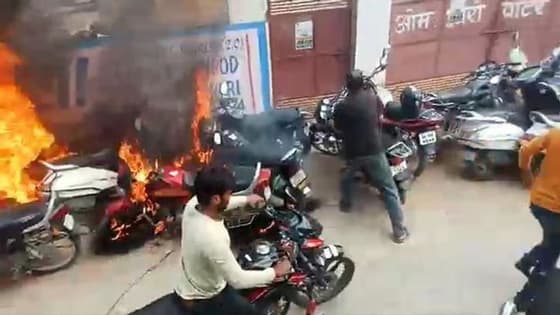 यह वीडियो हरियाणा के रेवाड़ी का है। यहां सोमवार को अन्नकूट कार्यक्रम के लिए मंदिर पहुंचे लोगों की गाड़ियों के ऊपर 11000 वोल्ट की बिजली का तार टूटकर गिर पड़ा। गाड़ियां बचाने लोगों ने अपनी जान तक जोखिम में डाल दी।