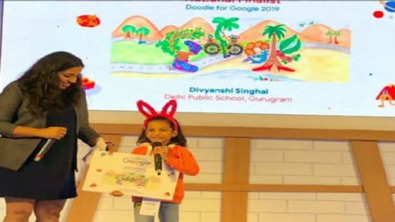 वीडियो डेस्क। दिल्ली पब्लिक स्कूल गुरुग्राम की दूसरी कक्षा की क्लास की दिव्यांशी सिंघल ने ‘Doodle for Google’ की प्रतियोगिता जीती है। प्रदूषण की समस्या और पेड़ों को कटाई से बचाने के लिए इस नन्ही चित्रकार ने पेड़ों के पैर होने की कल्पना की ताकि पेड़ कटाई से बचने के लिए भाग सकें। प्रतियोगिता में एक से लेकर 10वीं तक करीब एक लाख बच्चे शामिल हुए थे। ये पहली प्रतियोगिता जिसमें दिव्यांशी को सफलता मिली हो, इससे पहले भी ये कई प्रतियोगिता जीत चुकी हैं। हिपहॉप से लेकर कथक तक में वे प्रशिक्षण ले रही हैं और डांस इंडिया डांस (2017) जैसी प्रतियोगिता में भी ये जा चुकी है।