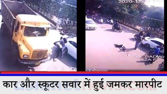 वीडियो डेस्क। तेज रफ्तार कभी किसी का भला नहीं करती। एमपी (Madhya Pradesh) के इंदौर (Indore) में कार और स्कूटर की टक्कर के बाद दोनों लोगों में जमकर लड़ाई होने लगी। गाड़ी टकराने की बात को लेकर कार सवार सिद्धार्थ सोनी और एक्टिवा सवार विकास यादव के बीच पहले वाद विवाद हुआ और फिर नौबत हाथापाई तक जा पहुंची इसी बीच एक ट्रक उसी रास्ते से गुजरा और हाथापाई के दौरान अचानक सिद्धार्थ सोनी सड़क पर गिर गए और उन पर ट्रक चढ़ गया जिससे उनकी मौत हो गई। ये घटना इंदौर बड़वानी प्लाजा कैनरा बैंक के नजदीक हुई. पूरी वारदात सीसीटीवी कैमरे में कैद हो गई।