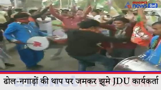 बिहार की चुनावी पिच पर NDA का शानदार प्रदर्शन, ढोल नागाड़े की थाप पर नाचे JDU कार्यकर्ता
