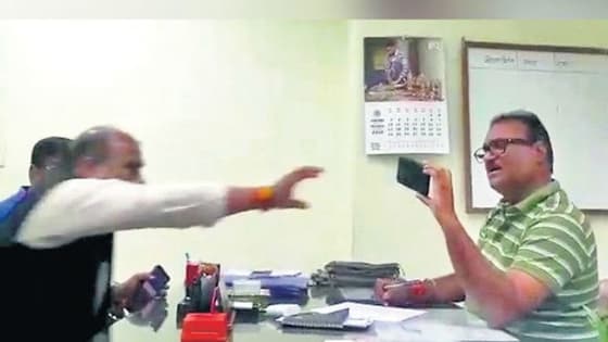 भोपाल(मप्र). यह वीडियो दतिया के SDM जेपी गुप्ता के चैंबर का है। कांग्रेस MLA के पति अपने किसी समर्थक की गिट्टी से भरी ट्रैक्टर-ट्रॉली छुड़वाने SDM के पास पहुंचे थे। संतराम सिरौनिया की पत्नी रक्षा भांडेर से MLA हैं। बातचीत के दौरान सिरौनिया और उनके समर्थक उग्र दिखे। एक कार्यकर्ता मोबाइल से वीडियो बना रहा था। किसी अनहोनी की आशंका को देखते हुए SDM भी अपने मोबाइल से वीडियो बनाने लगे। यह देखकर सिरौनिया भड़क उठे और SDM के हाथ से मोबाइल छीन लिया। सिरौनिया के साथ कांग्रेस नेता अजय शुक्ला, जीतू दांगी सहित 7-8 अन्य लोग भी थे। मोबाइल छीने जाने से SDM ने जब नाराजगी जताई, तो कार्यकर्ता उन्हें मारने को लपके। सिरौनिया ने SDM पर 10 हजार रुपए की रिश्वत मांगे जाने का आरोप लगाया है। वहीं SDM ने कहा कि सिरौनिया उनका मोबाइल कलेक्टर के कैबिन में छोड़कर चले गए थे। जाते-जाते वे लोग गिट्टी से भरी ट्रैक्टर- ट्रॉली भी अपने साथ ले गए। SDM ने कहा कि ड्राइवर के पास एक घनमीटर की रॉयल्टी थी, लेकिन ट्रॉली में 4 घनमीटर गिट्टी भरी थी। इसमें मामले में प्रशासन FIR दर्ज कराएगा।