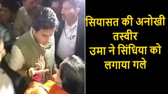 ग्वालियर में सियासत की एक अनोखी तस्वीर देखने के लिए मिली। रेलवे स्टेशन पर उमा भारती,कैलाश विजयवर्गी और ज्योतिरादित्य सिंधिया का मिलना हुआ। सिंधिया ने झुककर उमा भारती को नमन किया तो उमा भारती ने सिंधिया को गले लगाया और वहीं सिंधिया ने कैलाश विजयवर्गी को देखकर खुशी जताई और फिर दोनों गले मिले। इस दौरान उमा, सिंधिया और विजयवर्गी के बीच कुछ देर के लिए बातचीत भी हुई।