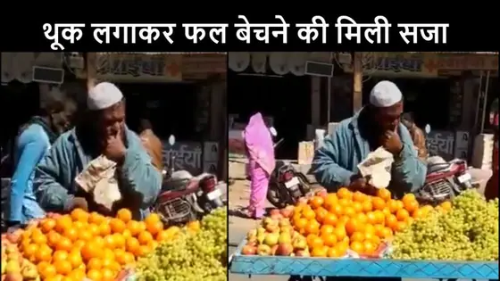 थूक लगाकर फल बेच रहे शख्स की असलियत आई सामने, गंदी हरकत का सबक मिला