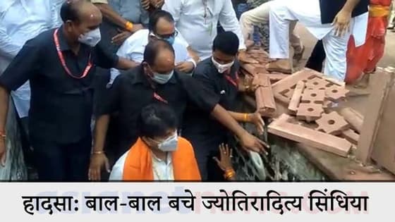 वीडियो डेस्क। बाबा महाकाल की शाही सवारी में पहुंचे बीजेपी सांसद ज्योतिरादित्य सिंधिया घायल होने से बाल-बाल बच गए। राणा जी की छतरी से राम घाट के लिए नीचे उतरते समय लाल पत्थर की रेलिंग टूट गई, जब सिंधिया ठीक वहीं से गुजर रहे थे। सीमेंट की रेलिंग उनके ऊपर गिरते-गिरते बची। रेलिंग पुलिसकर्मियों और कार्यकर्ताओं की धक्का-मुक्की से टूटी। घटना से सिंधिया कार्यकर्ताओं पर नाराज दिखाई दिए। इसके बाद वो इंदौर कैलाश विजयवर्गीय के घर मिलने पहुंचे तो स्वागत के दौरान हुई जमकर धक्कामुक्की हुई जिससे ऑफिस के गेट का कांच टूट गया।