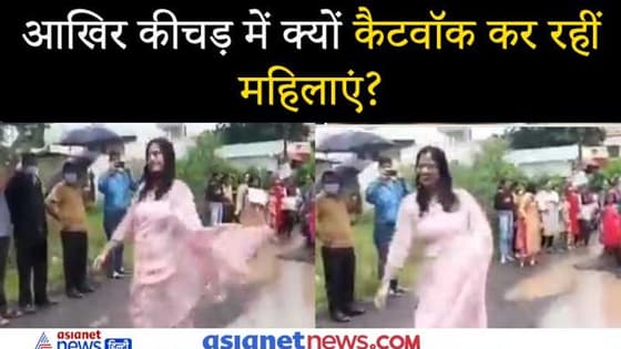 कीचड़ वाली सड़क पर महिलाओं का 'कैटवॉक', कुछ गिरीं कुछ संभली... देखें Video