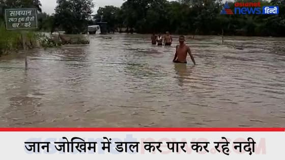 बारिश का कहर, सड़कें बनीं दरिया..जान जोखिम में डाल कर नदी पार कर रहे लोग