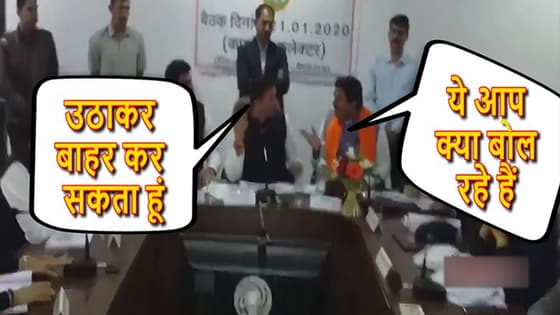 वीडियो डेस्क। मध्य प्रदेश के खेल मंत्री जीतू पटवारी का एक वीडियो सामने आया है जिसमें वो बीजेपी सांसद महेन्द्र सोलंकी से झगड़ते नजर आ रहे हैं। यह वीडियो देवास में जिला योजना समिति की मंगलवार को हुई बैठक का है। बीजेपी सांसद और खेल मंत्री जीतू पटवारी में विवाद काफी हद तक बढ़ गया था। इस दौरान मंत्री पटवारी ने बीजेपी सांसद से यहां तक कह दिया कि नियमों के तहत मैं आपको उठाकर इस बैठक से बाहर कर सकता हूं। वहीं सांसद ने कहा आप अगली बार मंत्री नहीं बनेंगे।वहीं जीतू पटवारी ने भी कहा तुम भी अगली बार सांसद नहीं बनोगे।