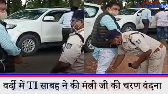 सैल्यूट के बाद थाना प्रभारी ने वर्दी में छूए मंत्री के पैर, वीडियो वायरल