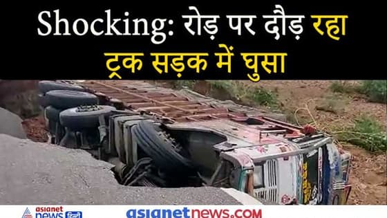 बाढ़ और बारिश का सितम... फर्राटे से दौड़ रहा ट्रक सड़क में समाया, हैरान कर देगा वीडियो