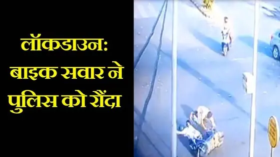 कोरोना के चलते देश में लॉकडाउन है। लॉकडाउन का पालन करवाने के लिए पुलिस प्रशासन तैनात है। लेकिन लोग लॉकडाउन को फॉलो नहीं कर रहे हैं। मुंबई से एक CCTV वीडियो सामने आया है जिसमें एक बाइक सवार ने पुलिस को रौंद दिया। पुलिस ने इसे रोकना चा रहा था। महाराष्ट्र में कोरोना के अब तक 1364 मामले सामने आए हैं और 97 लोगों की मौत हो चुकी है। मुंबई में कोरोना पॉजीटिव संक्रमितों के 876 मामले सामने आए हैं और अब तक 54 लोगों की मौत हो चुकी है। राज्य में कोरोना से हाल बेहाल में है