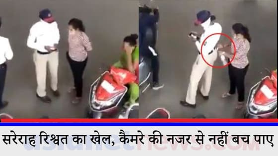 महिला ट्रैफिक पुलिसकर्मी ने गजब अंदाज में ली रिश्वत, पीछे की जेब में रखवाए पैसे, देखें VIDEO