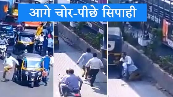 मुंबई की सड़क पर अकसर फिल्मों की शूटिंग के दौान ऐसे दृश्य देखने को मिल जाते हैं। लेकिन यह रियल फाइट है। आगे चोर है, तो पीछे सिपाही है। पुलिसवाले ने बदमाश को पहचान लिया था। बदमाश भागने लगा, लेकिन पुलिसवाले ने उसे दौड़कर पटक लिया।