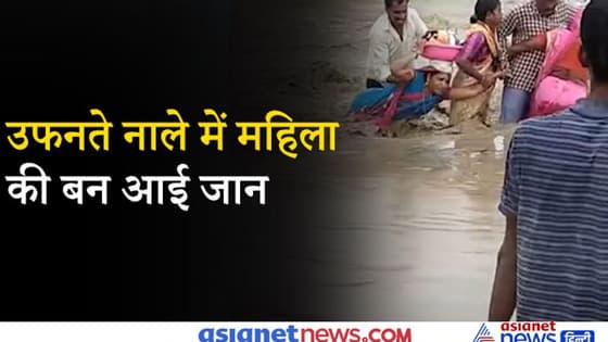 उफनते नाले में महिला की बन आई जान, लोगों ने हाथ पकड़ बचाई जिंदगी, सामने आया वीडियो