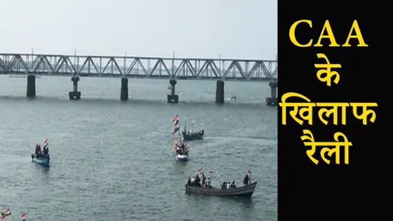 यहां 100 नावों में सवार होकर लोगों ने निकाला CAA के खिलाफ जुलूस