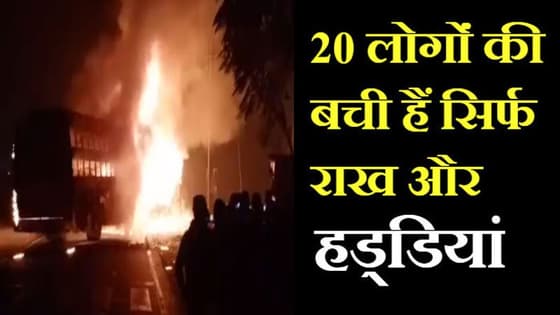 कन्नौज. उत्तर प्रदेश के कन्नौज में दिल्ली-कानपुर जीटी रोड पर घिलोई के पास आमने-सामने भिड़ंत के बाद शुक्रवार रात करीब साढ़े आठ बजे ट्रक और स्लीपर बस में आग लग गई। जिससे सवारियों से भरी बस और ट्रक धू-धूकर जल उठे। बस में करीब 45 यात्री थे। कई ने कूदकर जान बचाई, वहीं हादसे में 20 लोगों के मारे जाने की पुष्टि हो चुकी है। ये मंजर इतना भयाभय था कि 20 लोग राख हो गए सिर्फ हड्डियां ही बची हैं। 21 लोग घायल हैं। जिनका इलाज किया जा रहा है। वहीं दो लोग बिल्कुल सुरक्षित हैं जिन्हें घर भेज दिया गया है।
