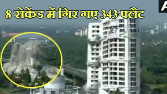 वीडियो डेस्क। केरल के कोच्चि में समुद्र किनारे मरादू इलाके में सरकार ने दो अवैध इमारतों को विस्फोट लगाकर गिरा दिया। ये दोनों इमारतें ताश के पत्तों की तह ढह गई। पूरा इलाका धूल और मलबे के गुबार से भर गया। इन इमारतों को गिरने में सिर्फ 8 सेकेंड का समय लगा। आपको बता दें कि दो अवैध इमारतों एच2ओ होली फेथ अपार्टमेंट परिसरों में 343 फ्लैट बने हुए थे।