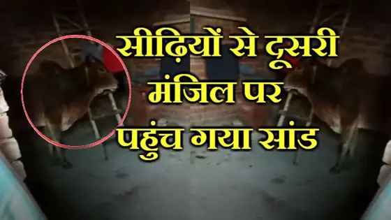 मौसम का लुत्फ लेने दूसरी मंजिल पर जा पहुंचा सांड, उतारने में लोगों के छूटे पसीने