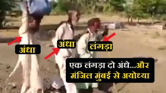 वीडियो डेस्क। ये लॉकडाउन की सबसे मार्मिक तस्वीर है। जहां बढ़ते कोरोना के कहर ने लोगों की जिंदगी को रोक दिया। गरीब मजदूर पलायन करने को मजबूर हो रहे हैं। ऐसे में ये मार्मिक तस्वीर आपको भावुक कर देगी। जहां मुंबई में भीख मांगकर अपना जीवन जीने वाले ये भिखाई लॉकडाउन में अपने घर जा रहे हैं। इन तीनों में दो अंधे हैं और एक लंगड़ा है। जहां एक लंगडा़ लाठी पकड़ते हुए दोनों अंधों को संभालते हुए रास्ता दिखा रहा है। सफर मुंबई से अयोध्या का तय करना है। इस वीडियो को देखकर आप भी भावुक हो जाएंगे।