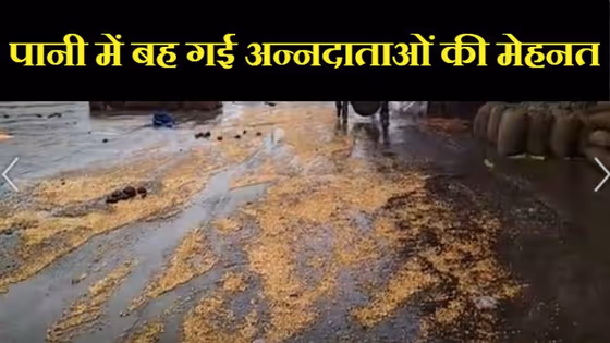 सर्दी के मौसम में बे-मौसम हुई बारिश ने किसानों की पूरी मेहनत पर पानी फेर दिया है। तेज बारिश की वजह से कृषि उपज मंडी में रखा अनाज भीग गया। वहीं पानी के बहाव के साथ खुले में रखा अनाज बह गया।