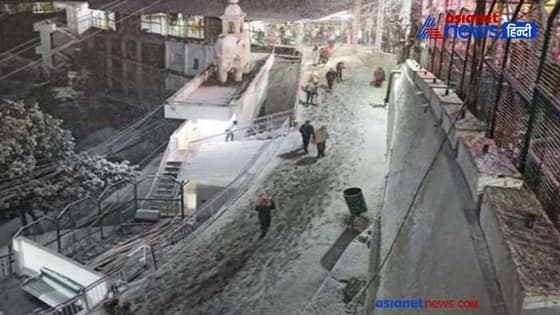 वीडियो डेस्क। वैष्णो देवी के भवन पर रविवार देर शाम को सीजन की पहली बर्फबारी हुई। अचानक बर्फ के फाहे गिरते ही ट्रैक पर यात्रा कर रहे श्रद्धालु खुशी के मारे झूम उठे।
