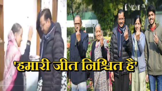मां ने तिलक लगाया...पीठ थपथपाई और दिया जीत आशीर्वाद...केजरीवाल ने परिवार के साथ डाला वोट