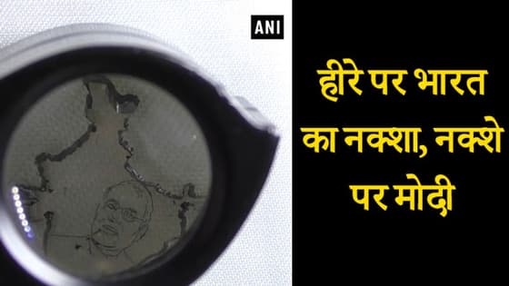 वीडियो डेस्क। सूरत के एक कारोबारी ने हीरे पर मोदीजी की तस्वीर उकेर कर चर्चा बटोरी है।1.48 कैरेट का हीराहीरे पर नरेंद्र मोदी की ये तस्वीर डायमंड कारोबारी केयूर मियानी और आकाश सलिया ने बनाई है। उन्होंने इसे 1.48 कैरेट के हीरे पर उकेरा है। इस हीरे को 1998 में इन दोनों के दादाजी ने खरीदा था। इस तस्वीर को हीरे पर बनाने में दोनों को तीन महीने का समय लगा।लाखों का है हीराकेयूर मियानी और आकाश सलिया ने जिस हीरे पर तस्वीर बनाई है, उसकी कीमत 1998 में 45 हजार रुपए थी। आज के समय में इसकी कीमत 7 लाख 9 हजार रुपए है। इसे बेहद बारीकी से बनाया गया है। कारोबारियों ने कहा कि उनका सपना है वो पीएम नरेंद्र मोदी को इसे भेंट करना चाहते हैं।