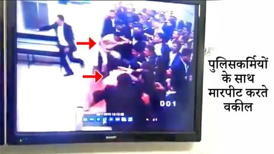 कोर्ट में पुलिसवालों को चोरों की तरह लात-घूसों से पीटते दिखे वकील, वीडियो हुआ वायरल