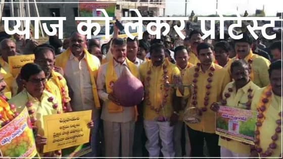 बढ़ती कीमतों पर चंद्रबाबू नायडू ने बडे़ प्याज के साथ किया प्रदर्शन