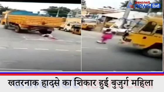 बुजुर्ग महिला के ऊपर से निकला ट्रक, खतरनाक हादसे में महिला को नहीं आई चोट, शॉकिंग VIDEO