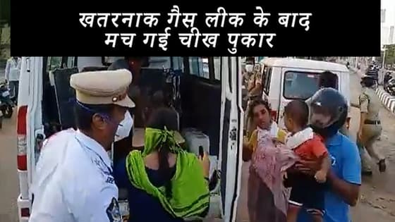 वीडियो डेस्क। आंध्र प्रदेश के विशाखापट्टनम के वेंकटपुरम गांव में केमिकल गैस लीक होने से 11 लोगों की मौत हो गई। इनमें एक बच्चा भी शामिल है। बताया जा रहा है कि गैस एलजी पॉलिमर्स इंडस्ट्री के प्लांट से लीक हुई। मीडिया रिपोर्ट्स के मुताबिक, एक हजार से ज्यादा लोग बीमार पड़े हैं। यह हादसा सुबह तीन बजे हुआ। जिला चिकित्सा और स्वास्थ्य अफसर ने तीन मौतों की पुष्टि की है। इस घटना के बाद से प्लांट के आसपास के 3 किमी इलाके में पैनिक फैल गया है। वेंकटपुरम गांव के आसपास लोगों ने सांस लेने में दिक्कत की शिकायत की है। कई लोगों को चक्कर भी आए। वहीं, कुछ लोगों के शरीर में लाल चकते भी पड़ गए। एनडीआरएफ और एसडीआरएफ की टीम को घटनास्थल पर भेज दिया गया है। उधर, पुलिस और प्रशासन ने स्थानीय लोगों की मदद से रेस्क्यू का काम चालू कर दिया है। गोपालपट्टनम सर्किल के इंस्पेक्टर रामान्या ने मीडिया को बताया कि उन्हें करीब 50 लोग सड़क पर बेहोश मिले। घटनास्थल तक पहुंचने में काफी दिक्कत हुई।