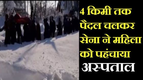वीडियो डेस्क। आज 72 वां सैनिक दिवस मनाया जा रहा है। ऐसे में देश के वीरों की कश्मीर की वादियों से बेहद ही खूबसूरत तस्वीर सामने आई है। ना सिर्फ देश बल्कि देशवासियों की मदद के लिए सेना हर पल तैयार रहती है। दरअसल कश्मीर में भारी बर्फबारी हो रही है वहीं कमर तक बर्फ बिछी हुई है। ऐसे में शमीना नाम की एक गर्भवती महिला को लेबर पेन शुरू हो गए। ऐसे में सेना के 100 जवानों और स्थानीय लोगों ने मिलकर 4 किलोमीटर पैदल चलकर महिला को अस्पताल पहुंचाया। जहां महिला की सुरक्षित डिलीवरी कराई गई। महिला और बच्चा दोनों बिल्कुल सुरक्षित हैं। वहीं पीएम मोदी ने भी सेना के इस काम की सराहना की है।