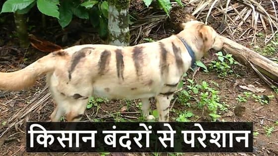 शिवमोगा. कर्नाटक में किसान बंदरों के आतंक से परेशान है। जिनसे बचने के लिए किसानों ने नई तरकीब निकाली है। जिसमें किसानों ने बंदरों को भगाने के लिए कुत्तों का सहारा लिया है। हालांकि इन कुत्तों को उन्होंने शेर का रूप दे दिया है। जिससे डर कर बंदर अब खेतों में नहीं आ रहे है। दरअसल, नलुरू गांव में बंदरों ने किसानों की नाक में दम कर रखा है। किसान जरा-से खेतों से इधर-उधर क्या होते हैं, बंदर फसलों को नुकसान पहुंचकर भाग जाते हैं। किसान ने पहले शेर की शक्ल का एक बिजुका खेत में खड़ा किया। इससे बंदरों का आना कम हुआ। लेकिन बंदर भी कुछ कम समझदार नहीं होते। धीरे-धीरे बंदरों को भी पता चल गया कि किसान उन्हें बेवकूफ बना रहा है। वे फिर से खेत में उत्पात मचाने लगे। आखिरकार किसान ने अपने कुत्ते को ही पेंटिंग करके 'शेर' बना दिया। अब बंदर डरे हुए हैं और किसान खुश है।