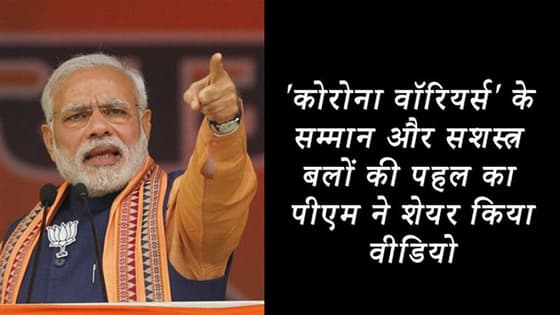 प्रधानमंत्री नरेंद्र मोदी ने कोविड-19 महामारी से निपटने से में जुटे स्वास्थ्यकर्मियों समेत अग्रिम मोर्चे पर तैनात कर्मियों का आभार व्यक्त करने के लिए विभिन्न शहरों और कस्बों में स्थित प्रमुख अस्पतालों के ऊपर सेना के हेलिकॉप्टरों द्वारा फूलों की बारिश की सराहना की। पीएम मोदी ने ट्वीट किया, 'कोविड-19 का बहादुरी से मुकाबला करने में सबसे पहली पंक्ति में खड़े लोगों को सलाम. हमारे सशस्त्र बलों द्वारा शानदार प्रदर्शन.' प्रधानमंत्री ने स्वास्थ्य पेशेवरों और अन्य का आभार व्यक्त करने में शामिल सैन्य विमान, हेलिकॉप्टरों और बैंड का एक वीडियो भी पोस्ट किया। कोरोना वायरस महामारी से मुकाबले में लगे लाखों चिकित्सकों, पैरामेडिकल कर्मियों, स्वच्छता कर्मियों एवं अन्य कर्मियों के प्रति आभार जताने के लिए देशव्यापी अभियान के तहत भारतीय वायुसेना के लड़ाकू विमानों ने रविवार को प्रमुख शहरों व कस्बों में उड़ान भरी जबकि सैन्य हेलिकॉप्टरों ने देशभर में प्रमुख अस्पतालों के ऊपर फूलों की बारिश की।