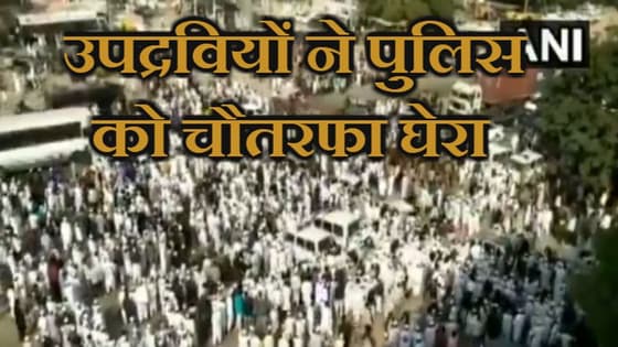 उपद्रवियों के बीच फंसी पुलिस की गाड़ी, अंदर बैठे जवानों के छूटे पसीने