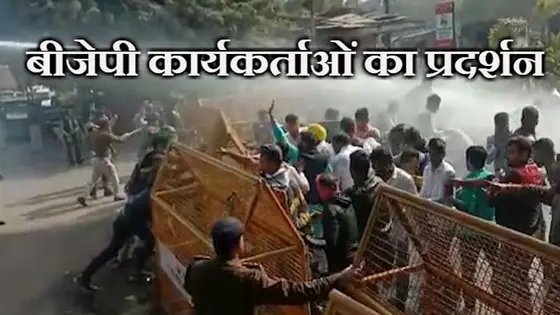 प्रदर्शन कर रहे बीजेपी कार्यकर्ताओं पर पुलिस ने चलाए वाटर कैनन