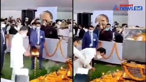 वीडियो डेस्क। कांग्रेस के पूर्व अध्यक्ष और केरल के वायनाड से सांसद राहुल गांधी का एक वीडियो सोशल मीडिया पर खूब वायरल हो रहा है। ये वीडियो तरुन गोगोई की श्रद्धांजलि सभा का है। लेकिन राहुल गांधी गोगोई को पुष्पांजलि अर्पित करते वक्त ऐसे कुछ कर बैठे जिसके चलते अब वह जमकर ट्रोल हो रहे है। राहुल गांधी जब तरुण गोगोई के पार्थिव शरीर को श्रद्धांजलि देने जाते है वही अगरबत्ती जलाते है लेकिन इस दौरान पहले तो वह अगरबत्ती को बुझाना भूल जाते है इतनी ही नहीं राहुल गांधी अगरबत्ती को सही से रख भी नहीं पाए साथ ही अगरबत्ती गिर जाती है और उनकी मदद के लिए खुद गौरव गोगोई को आना पड़ा। सोशल मीडिया पर अब उनका ये वीडियो तेजी से वायरल हो रहा है।