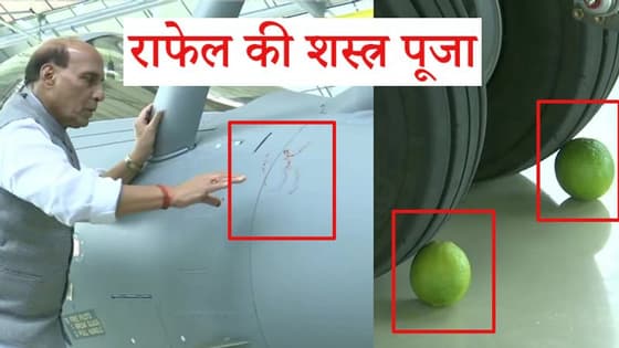 फ्रांस में रक्षा मंत्री राजनाथ सिंह ने राफेल की पूजा की। उन्होंने सबसे पहले ऊं लिखा, इसके बाद कलावा बांधा और नारियल चढ़ाया। इसके अलावा राफेल के पहियों के नीचे नींबू रखा, जिससे की नकारात्मक शक्तियां दूर हो जाएं। बता दें कि वायुसेना के लिए आज का दिन ऐतिहासिक है। फ्रांस ने भारत को RB 001 राफेल विमान सौंप दिया है।