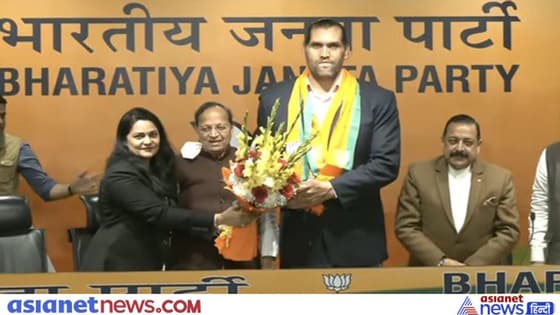 Video: 7 फुट 1 इंच के खली को जब पहनाया BJP का गमछा, देखिए द ग्रेट खली का अंदाज