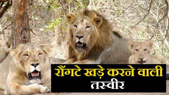दो शेर और एक शेरनी के सामने अचानक आ गए बाइक सवार