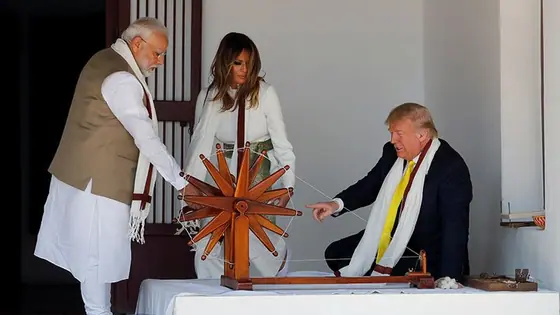 मोदी के बताने पर भी चरखा नहीं चला पाए ट्रम्प और मेलानिया, लेनी पड़ी 2 मिनट की ट्रेनिंग