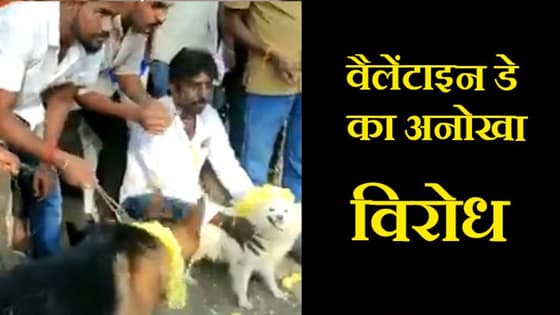 वीडियो डेस्क। वैलेंटाइन डे प्यार का इजहार करने का दिन है। तो दूसरी तरफ उसका विरोध भी धर्म और संस्कृति के नाम पर खूब होता है। बीते सात दिनों से वैलेंटाइन वीक देशभर में मनाया जा रहा है और 14 फरवरी को आखिर वह दिन आने वाला है, जब प्रेमी अपने दिल की बात अपनी प्रेमिका से कहेंगे। तमिलनाडु के कोयंबटूर में इसके विरोध में घटना सामने आई।भारत सेना नाम के संगठन के सदस्यों ने दो डॉगीज की शादी करा दी। बताया जा रहा है कि इस घटना में करीब 10 लोग एक साथ नारंगी झंडे लेकर आए और उन्होंने जर्मन शेफर्ड डॉगी की पोमेरेनियन डॉगी से शादी करने का फैसला किया और उनके गले में माला डाल दीं।