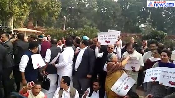 वीडियोः प्याज की बढ़ती कीमतों के विरोध में कांग्रेस का हंगामा, सरकार के खिलाफ किया प्रदर्शन