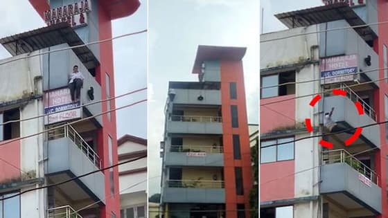 यह वीडियो गुजरात के वलसाड जिले के वापी का है। आरोप है कि यह शख्स किसी ज्वेलर्स से फ्रॉड करके भाग निकला था। लेकिन ज्वेलर्स अपने कुछ साथियों के साथ उसे ढूंढ़ते हुए होटल तक आ पहुंचा। इससे डरकर शख्स पांचवीं मंजिल पर जाकर खड़ा हो गया। आशंका है कि घबराहट में वो नीचे गिर पड़ा।